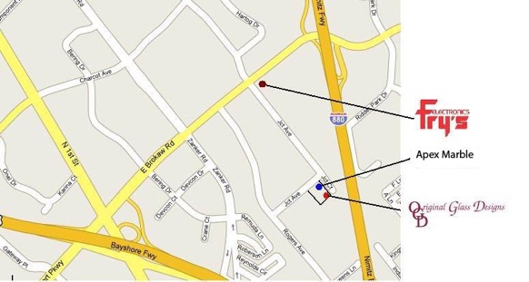 Immediately turn LEFT into the first driveway (You will see Apex Marble in the front).